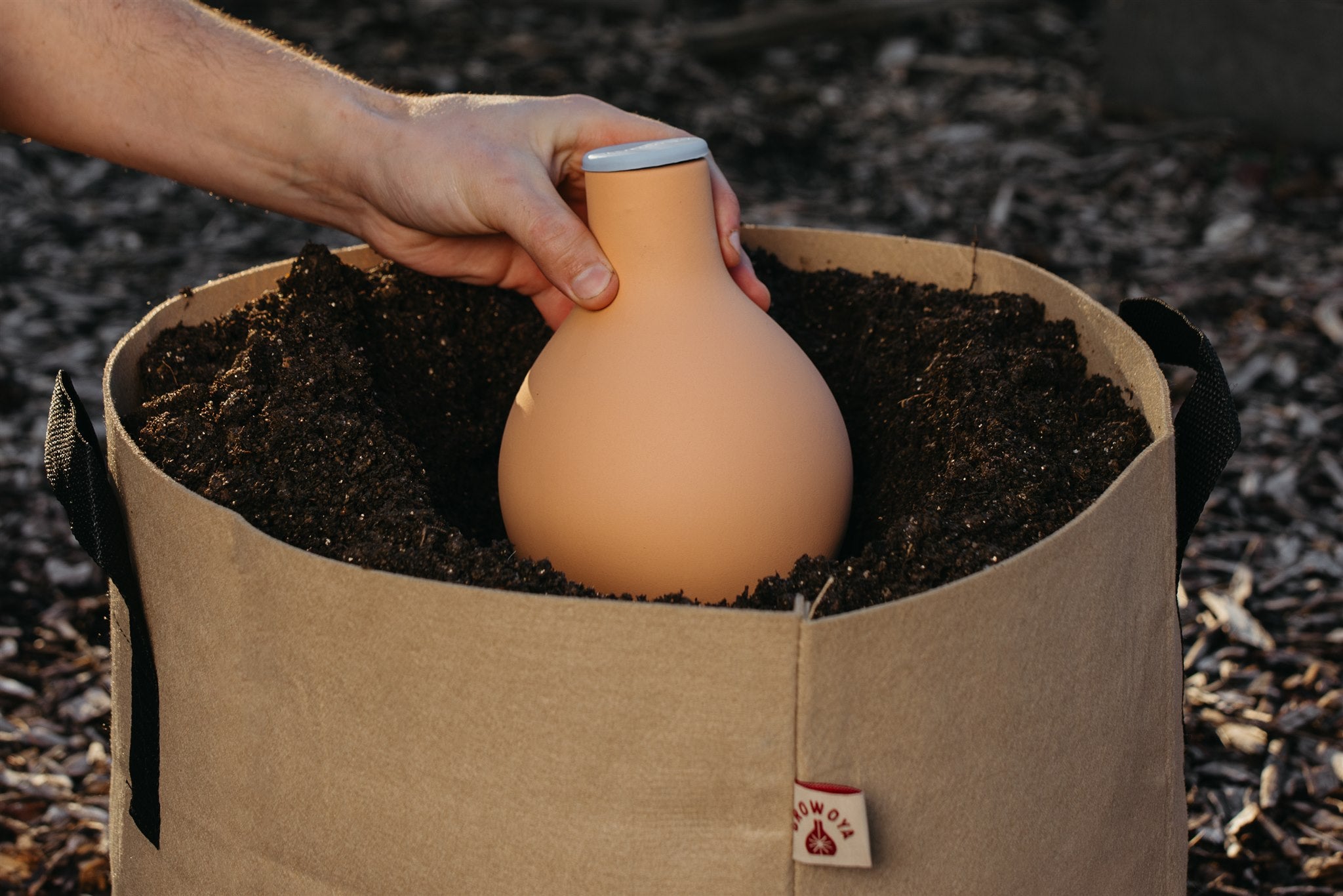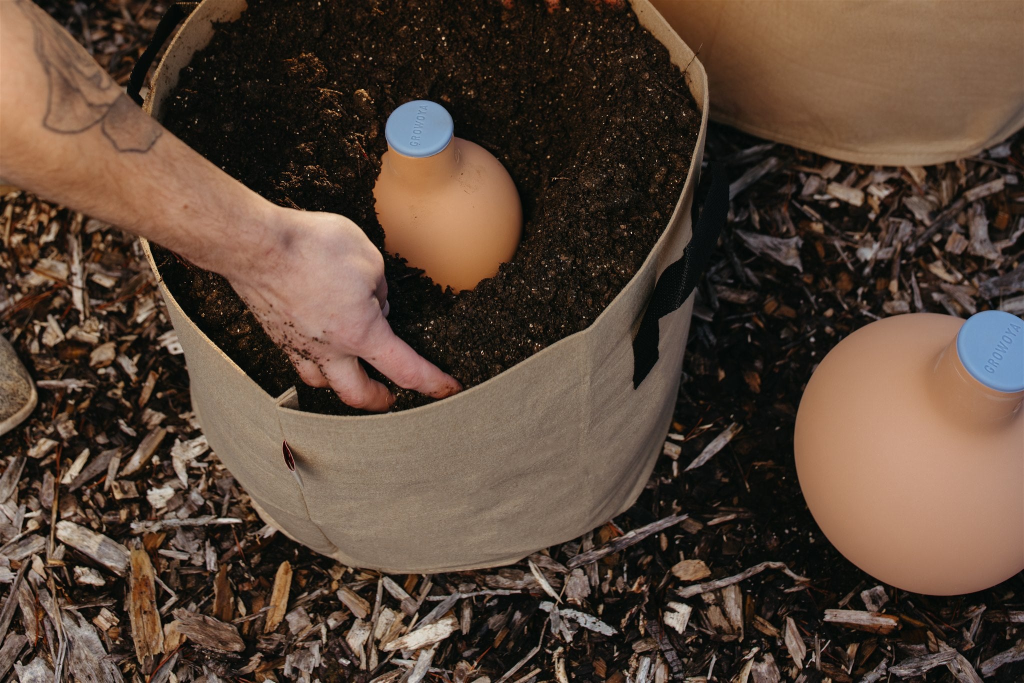 Whether you're working with a pint-sized garden, balcony, or just need more room in your garden, the Oya™ Grow Bag is a grow bag with an Oya™ Watering Pot sized perfectly for the bag. This combo gets you the benefit of watering less with more space to grow your plants.